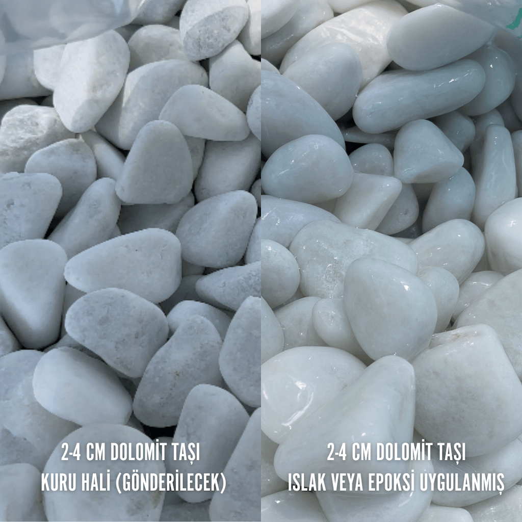 Dekoratif peyzaj uygulamaları için özel olarak seçilmiş 2–4 cm taneli beyaz dolomit taşı, yüksek saflıkta kalsiyum-magnezyum karbonat yapısıyla üretilmiştir. Bahçe, teras, saksı ve iç mekân dekorasyonlarında doğal beyaz görünümüyle sade, şık ve modern bir estetik kazandırır. Ürün kuru halde gönderilir; ıslatıldığında veya epoksiyle kaplandığında, taşın doğal beyaz parlaklığı daha belirgin hale gelir.